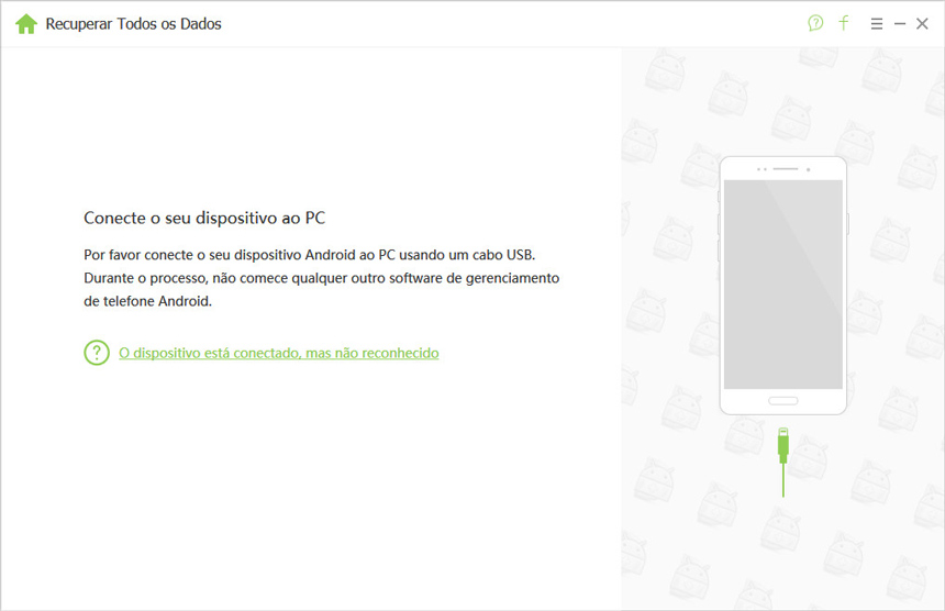 Inicie o programa e selecione a opção “ Recuperar Dados Perdidos” na tela principal. Conecte seu telefone Android ao computador usando um cabo USB.